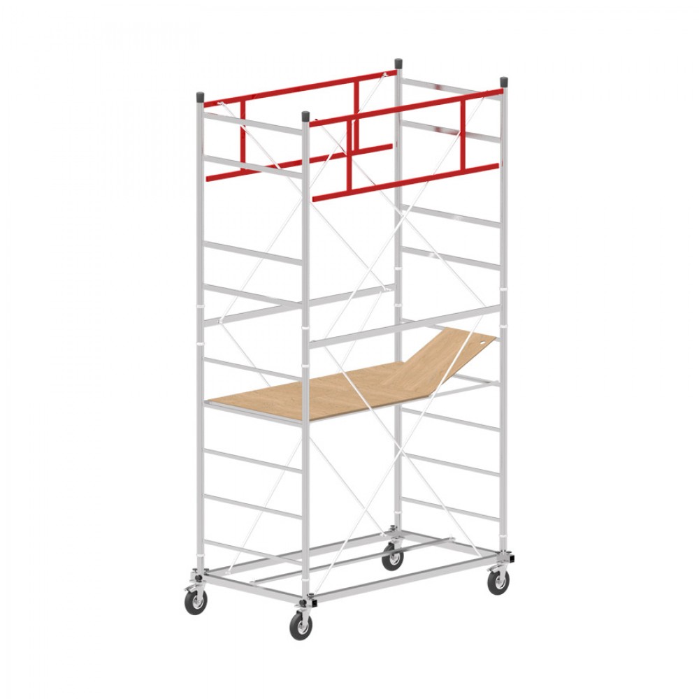 Il trabattello M5 LUX è adatto per usi professionali, edilizia, manutenzioni civili ed industriali, settore elettrico. Facile da montare e smontare, è dotato di una base estraibile rinforzata in quattro pezzi ed è corredato di ruote da diametro 200 mm. Il piano di lavoro in legno è raggiungibile dall'interno attraverso una botola di passaggio. I piani di lavoro sono collegabili ogni 30 cm. I tiranti diagonali sono facilmente applicabili su appositi bussolotti alettati senza alcun uso di viti e bulloni. Il trabattello è zincato elettroliticamente e completo di certificato di conformità.